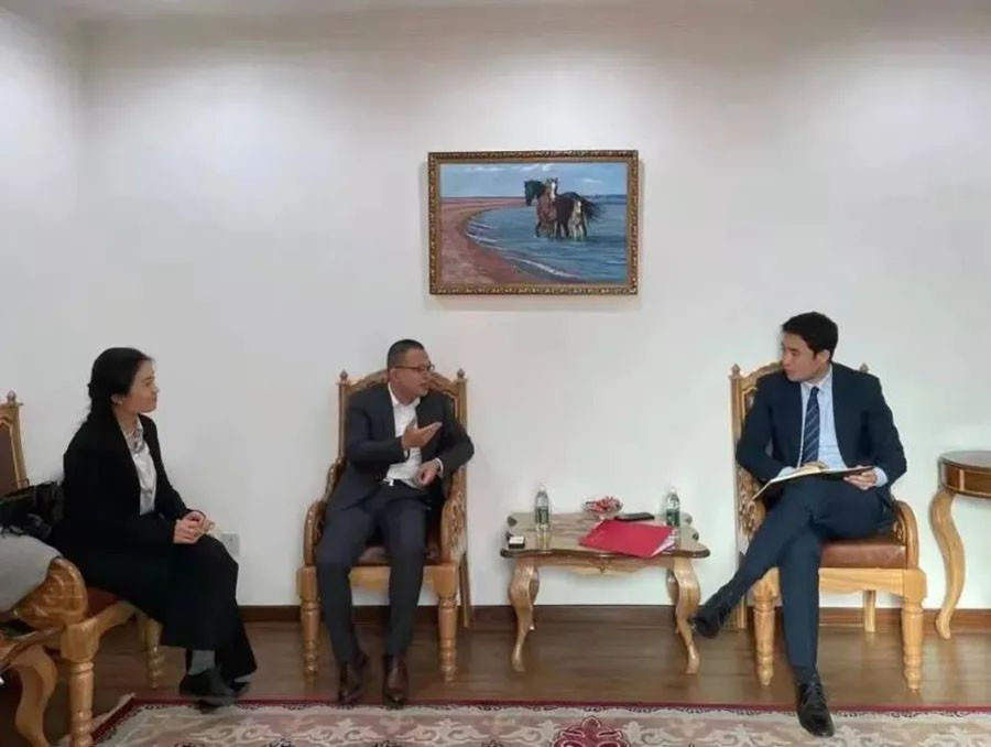 中国亚洲经济发展协会矿业专业委员会陈必彬会长 与蒙古国驻华大使馆商务参赞巴图组勒会谈